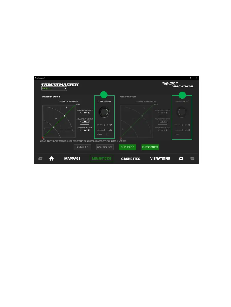 La zone morte correspond aux zones définies sur le ministick qui ne répondent pas aux