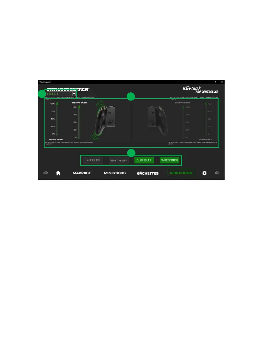 - Paramétrez les vibrations des poignées droite et gauche ainsi que les vibrations des gâchettes