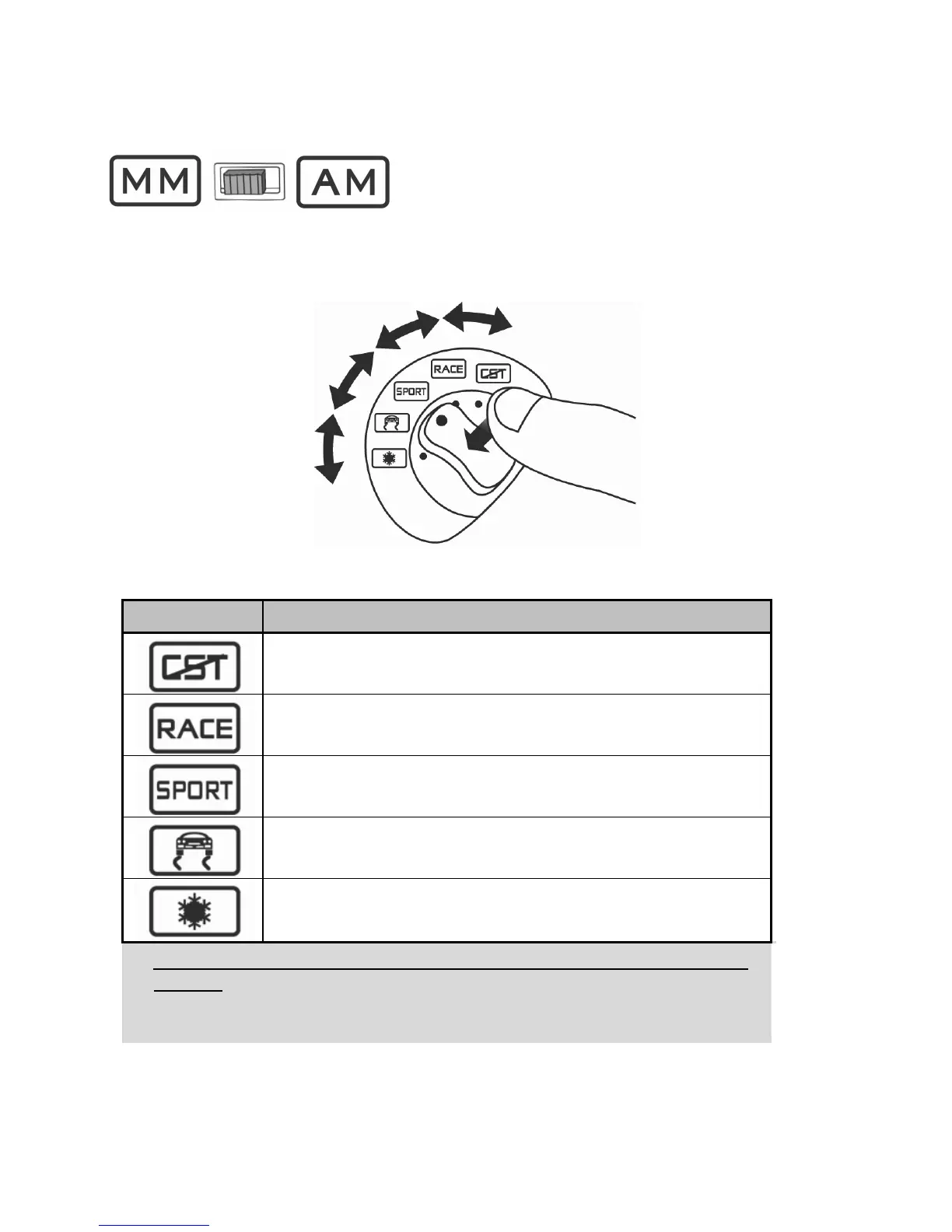 1) Stel de schuifregelaar (7) in op MM (Manettino handmatig)