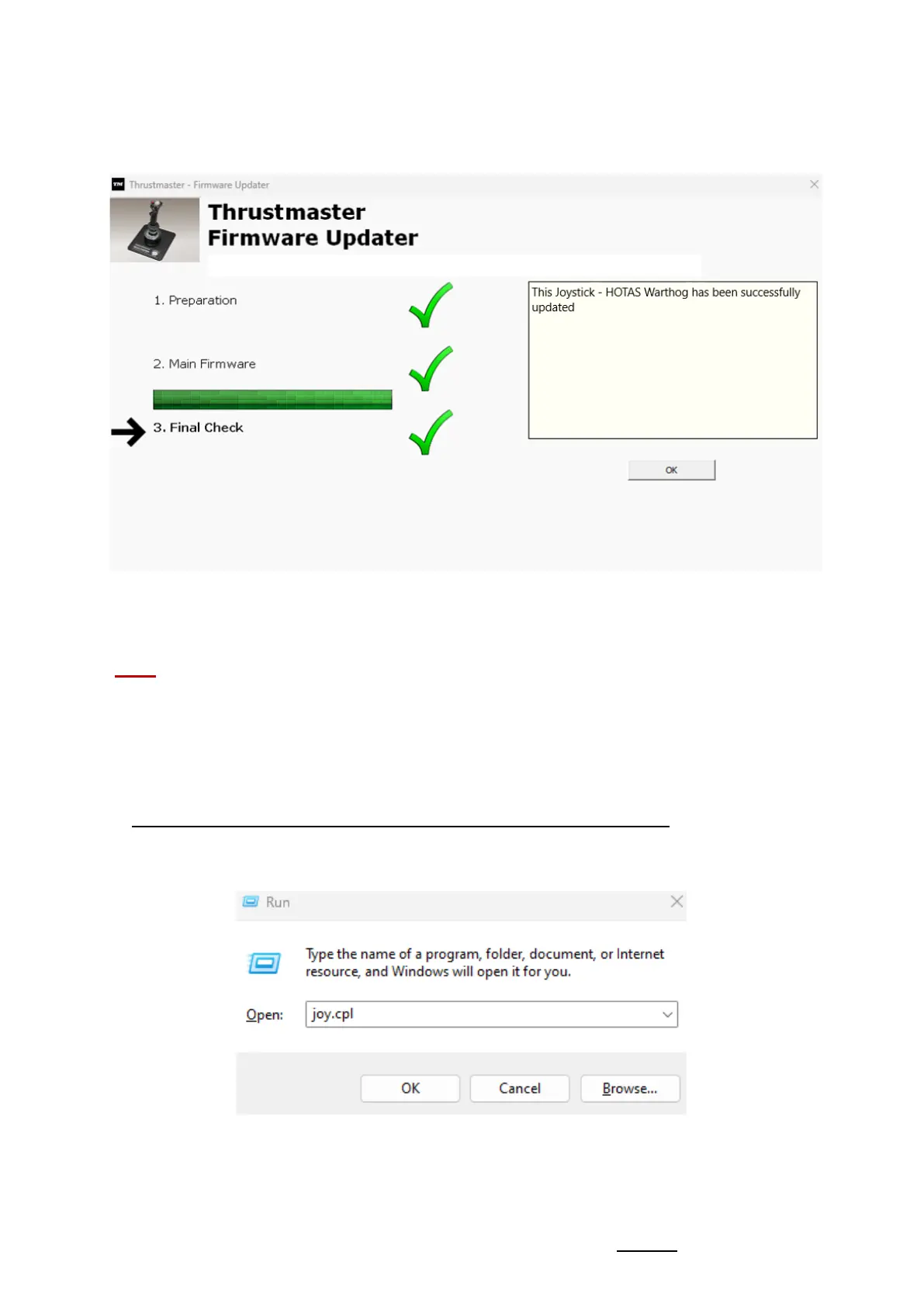 - Se abre la ventana Ejecutar: escribe joy.cpl y después haz clic en OK