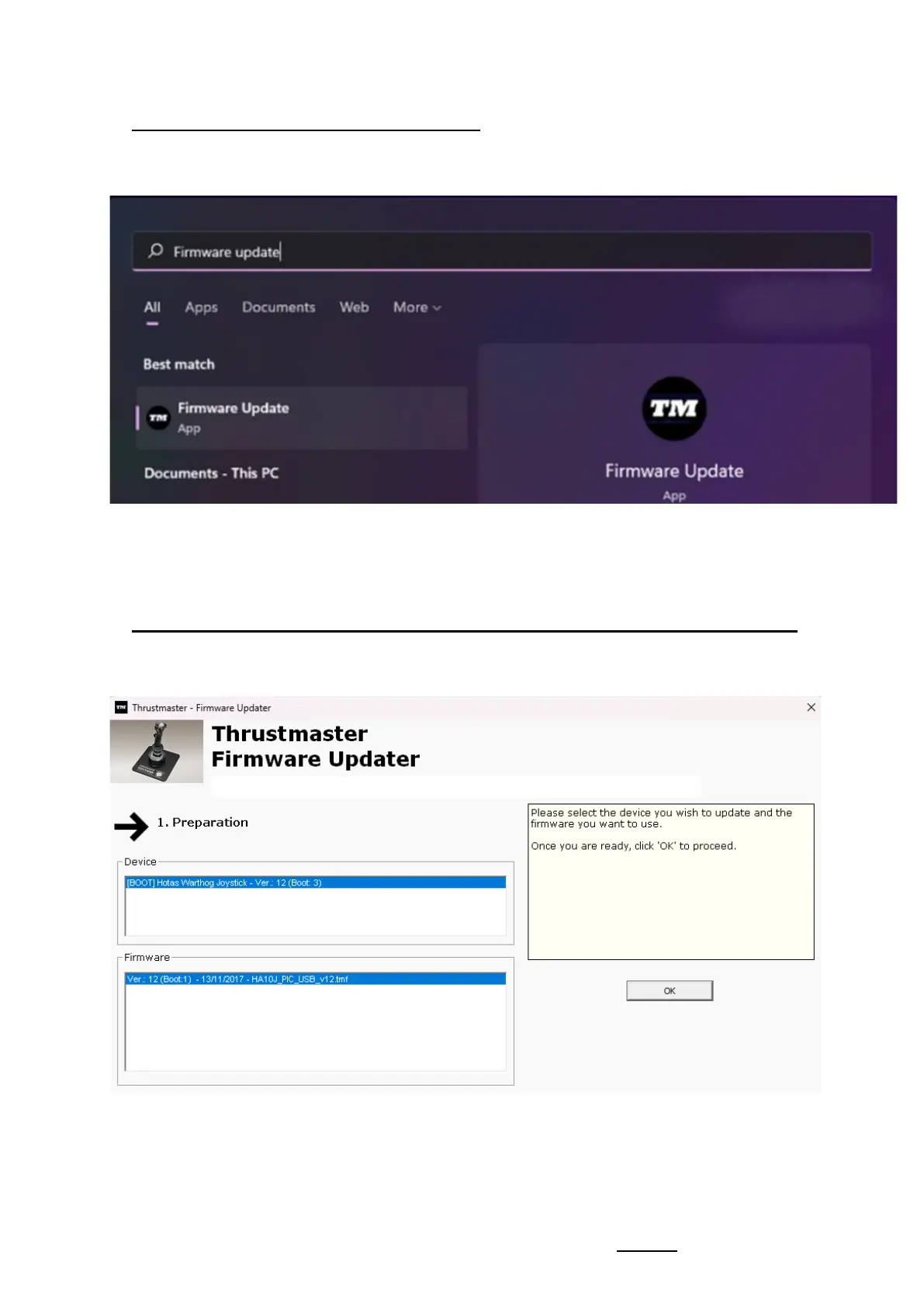 5) Het venster van de "Thrustmaster – Firmware Updater" wordt weergegeven