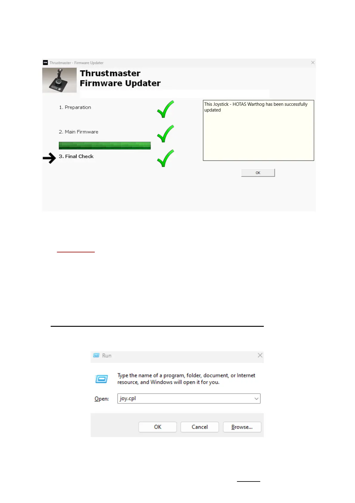 - Het venster Uitvoeren opent. Typ joy.cpl en klik op OK