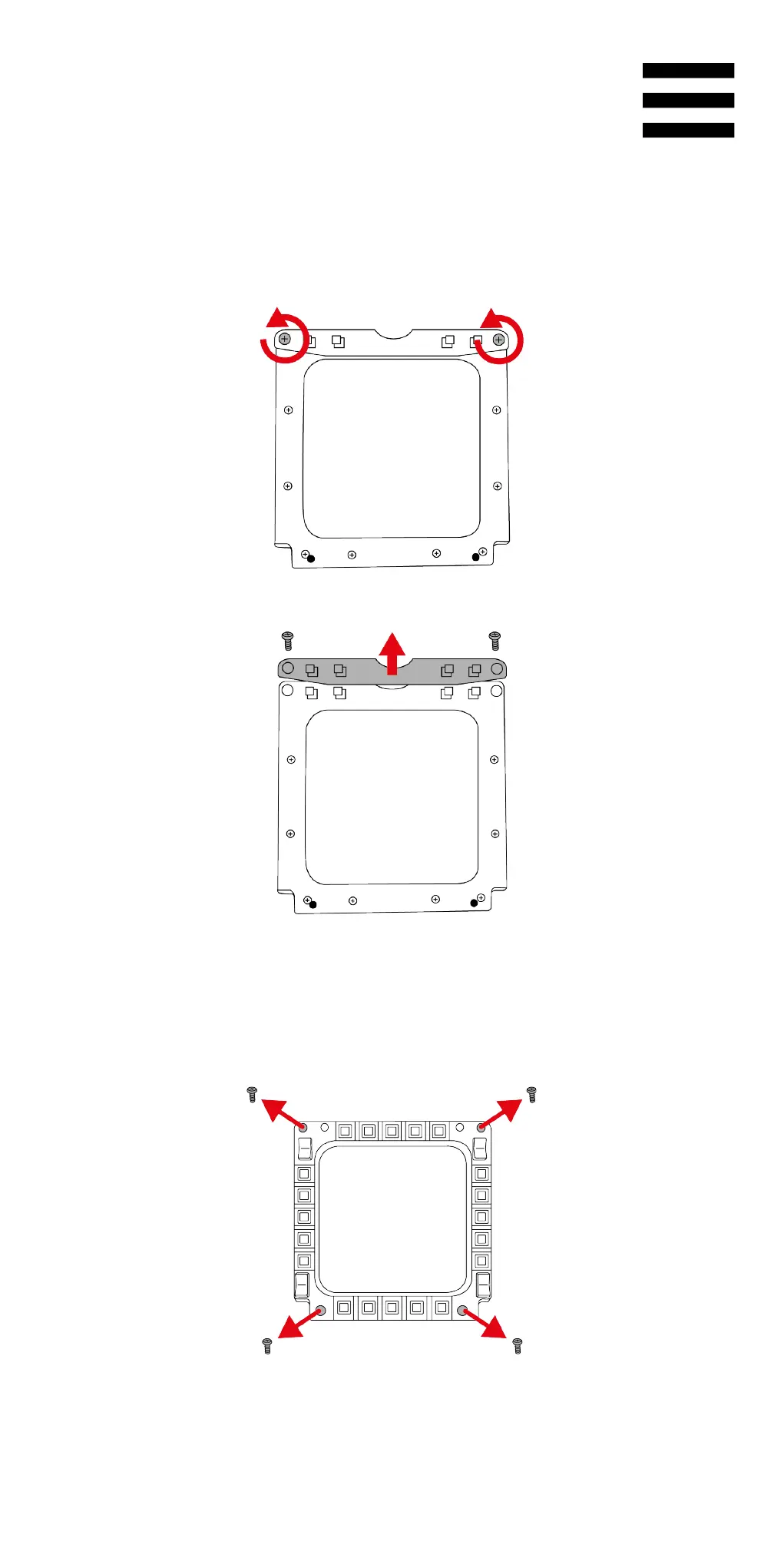4. Снимите четыре крышки винтовых отверстий (2),