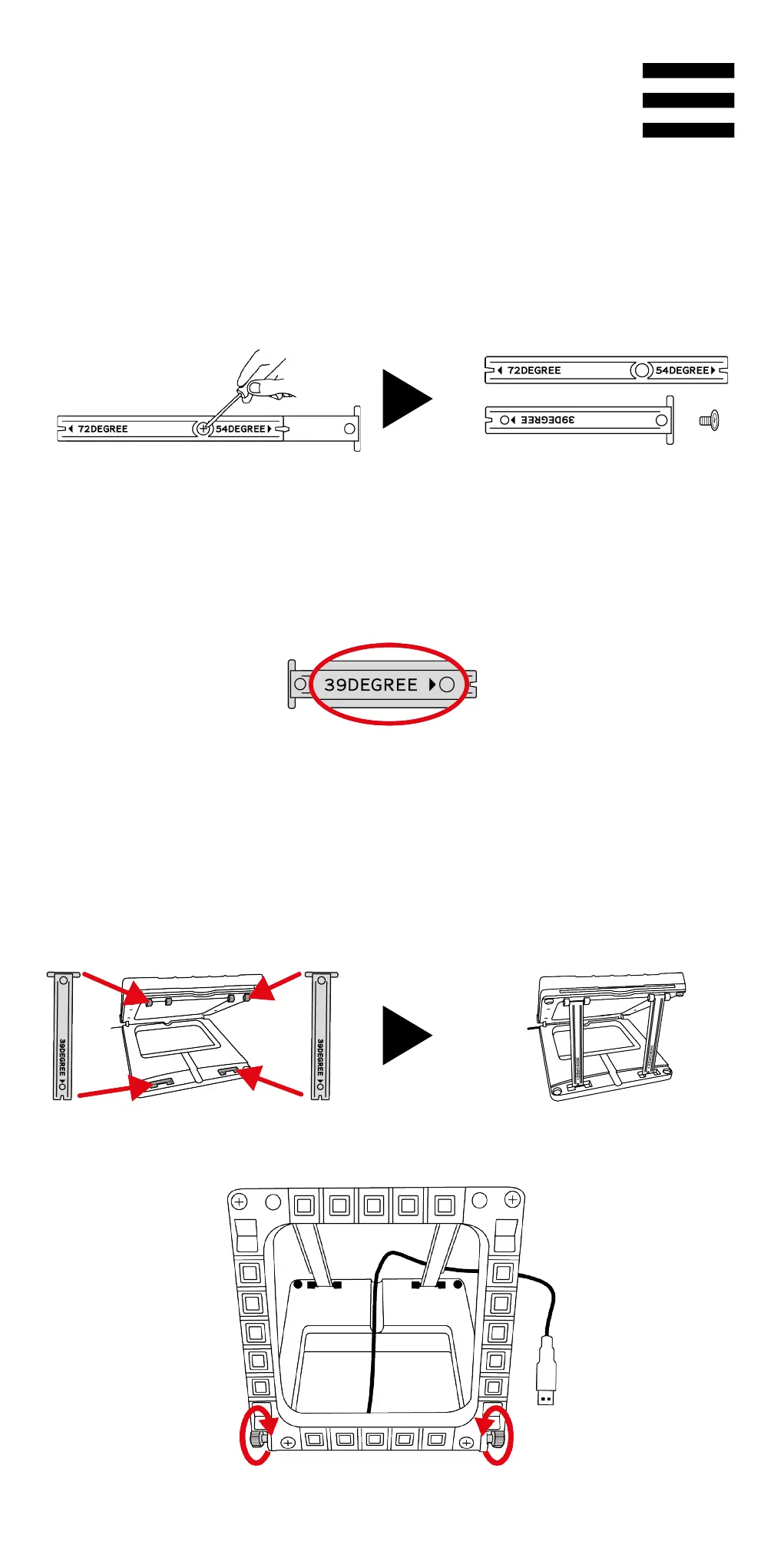 39DEGREE 表示の短い取り付けロッドをキープし、