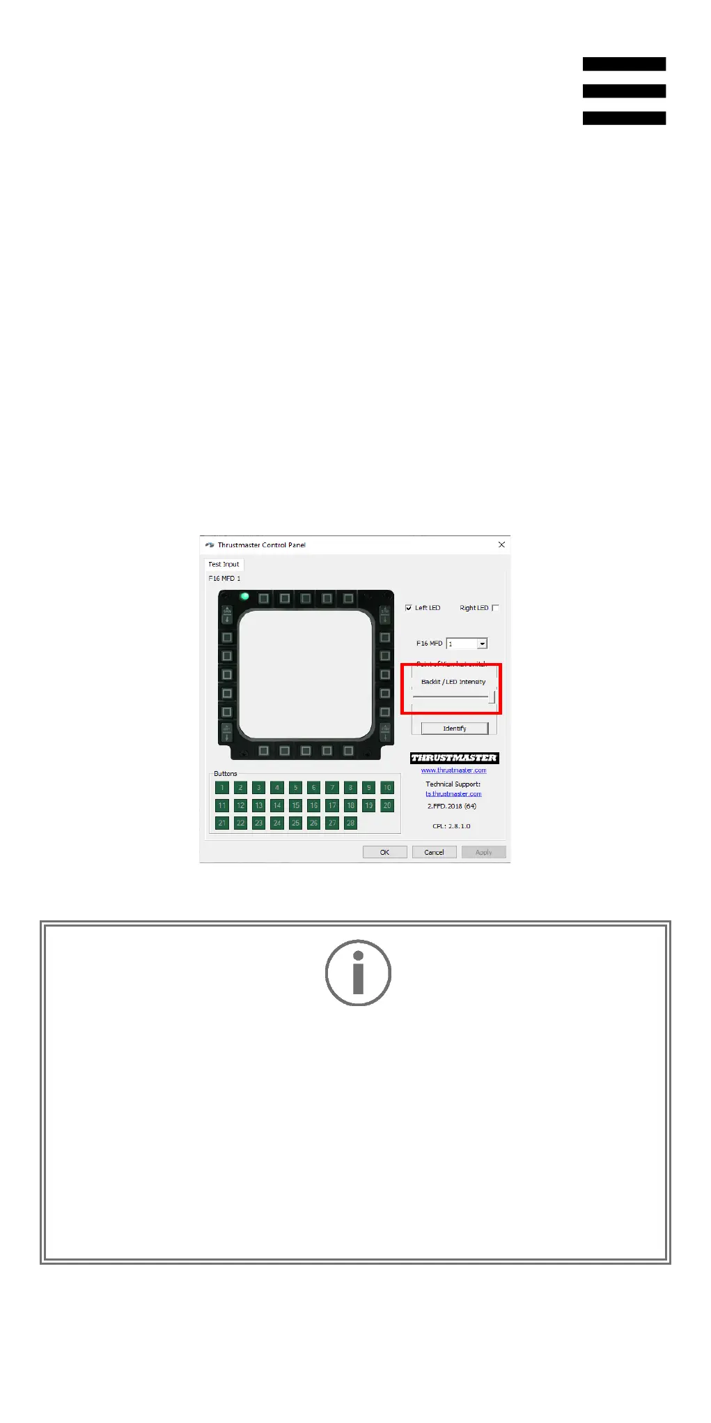 1. 제어판에 액세스하려면 시작/Thrustmaster MFD