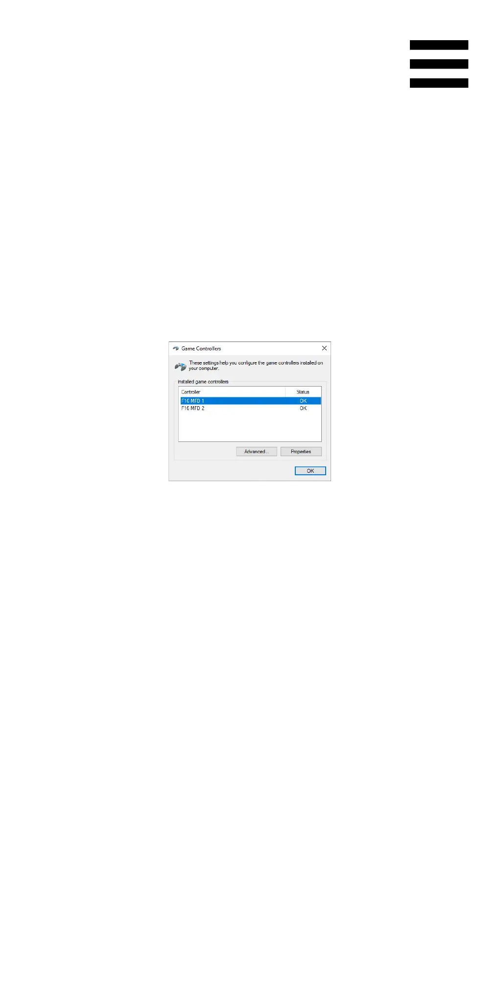 2. 게임 컨트롤러 창이 열리면 MFD 기본