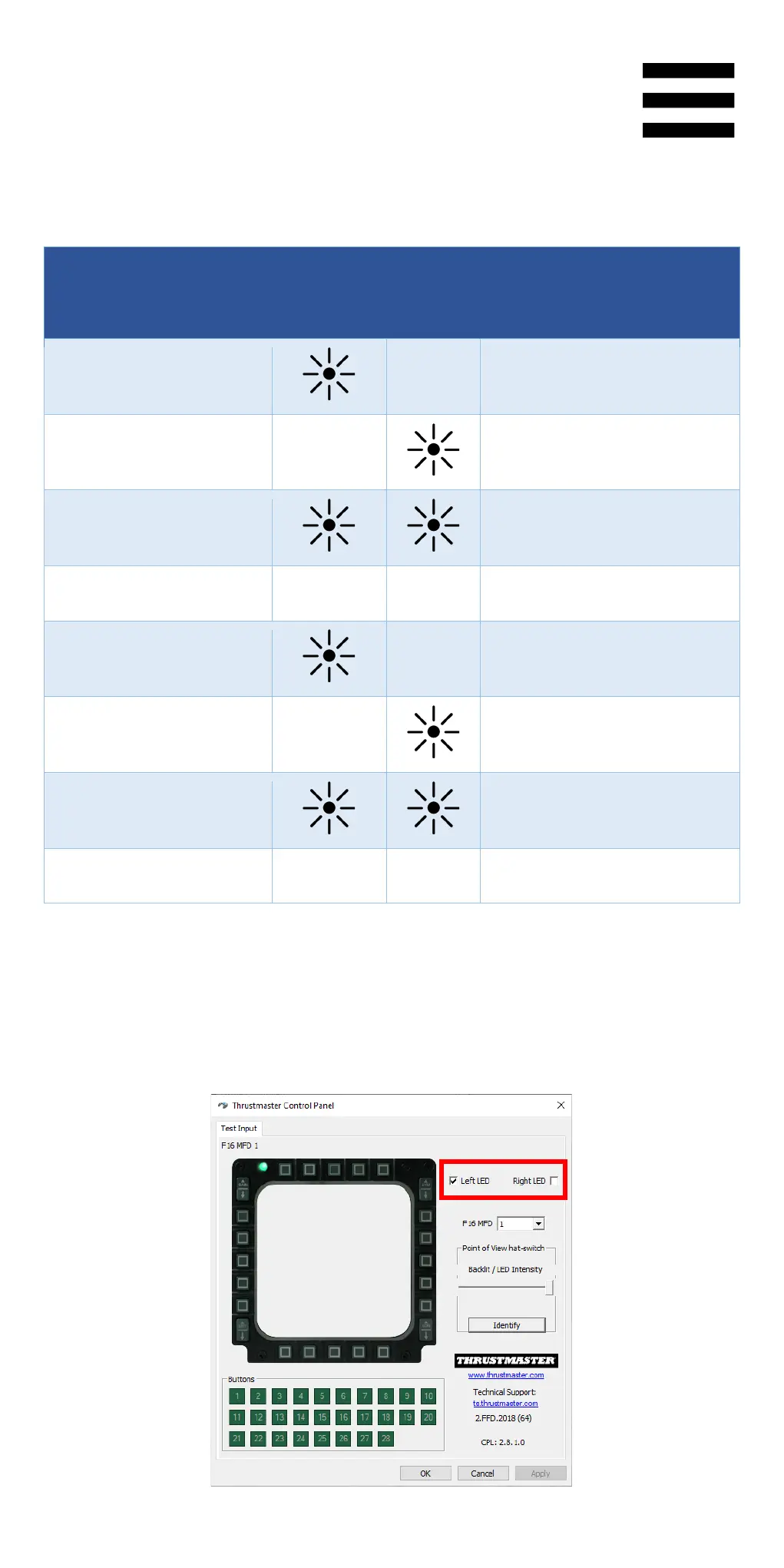 ou non Left LED (LED gauche) et Right LED (LED droite)
