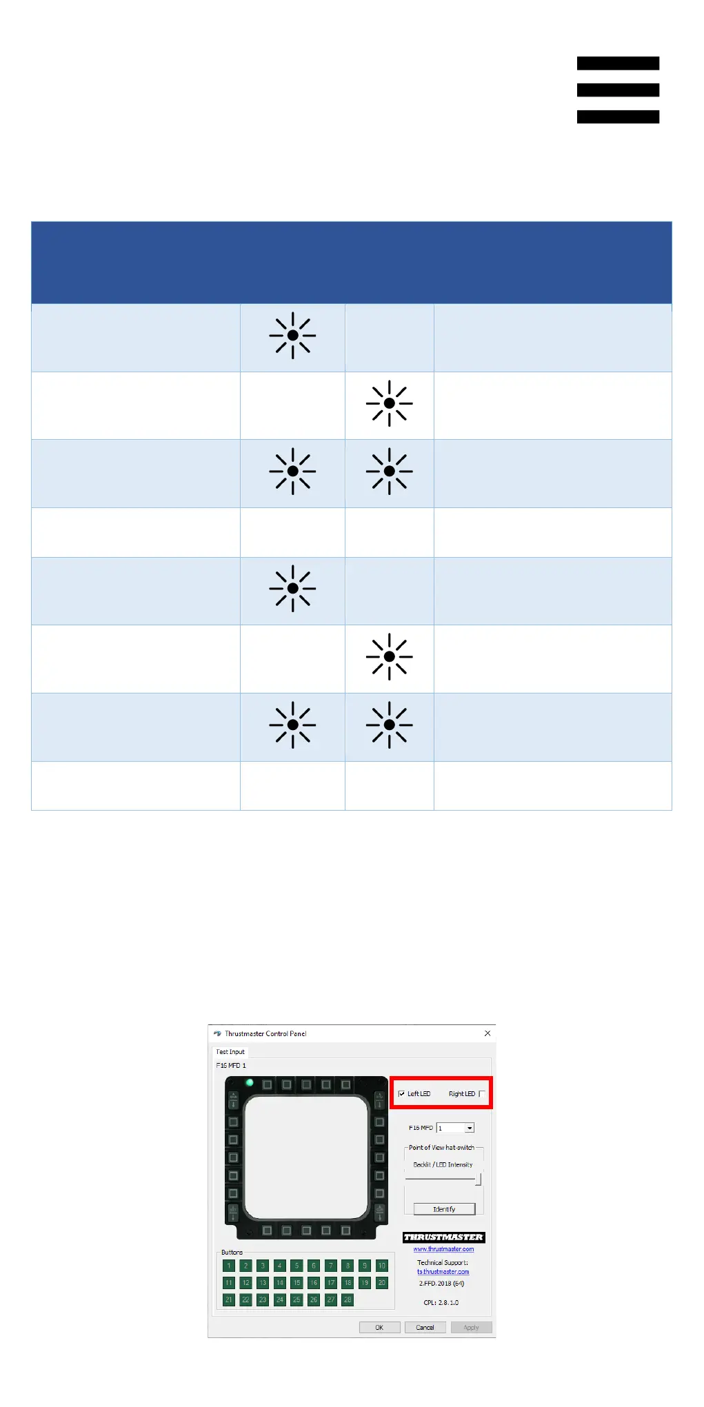 ohjauspaneelissa rastittamalla kohdat Left LED (vasen