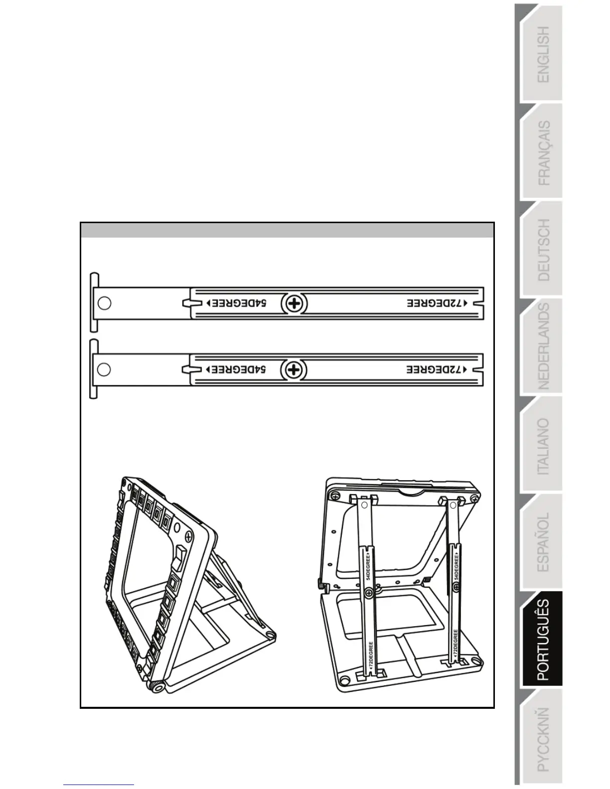 - Uma haste longa (com as indicações 72DEGREE e 54DEGREE)