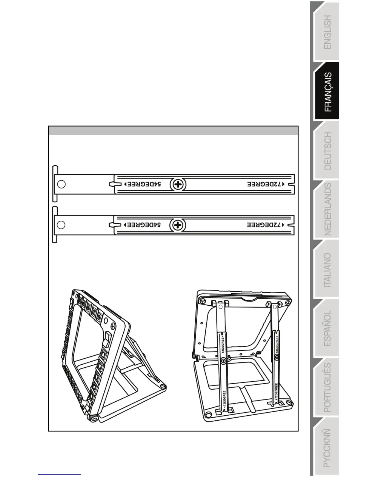 - Une longue (avec les indications « 72DEGREE » et « 54DEGREE »)