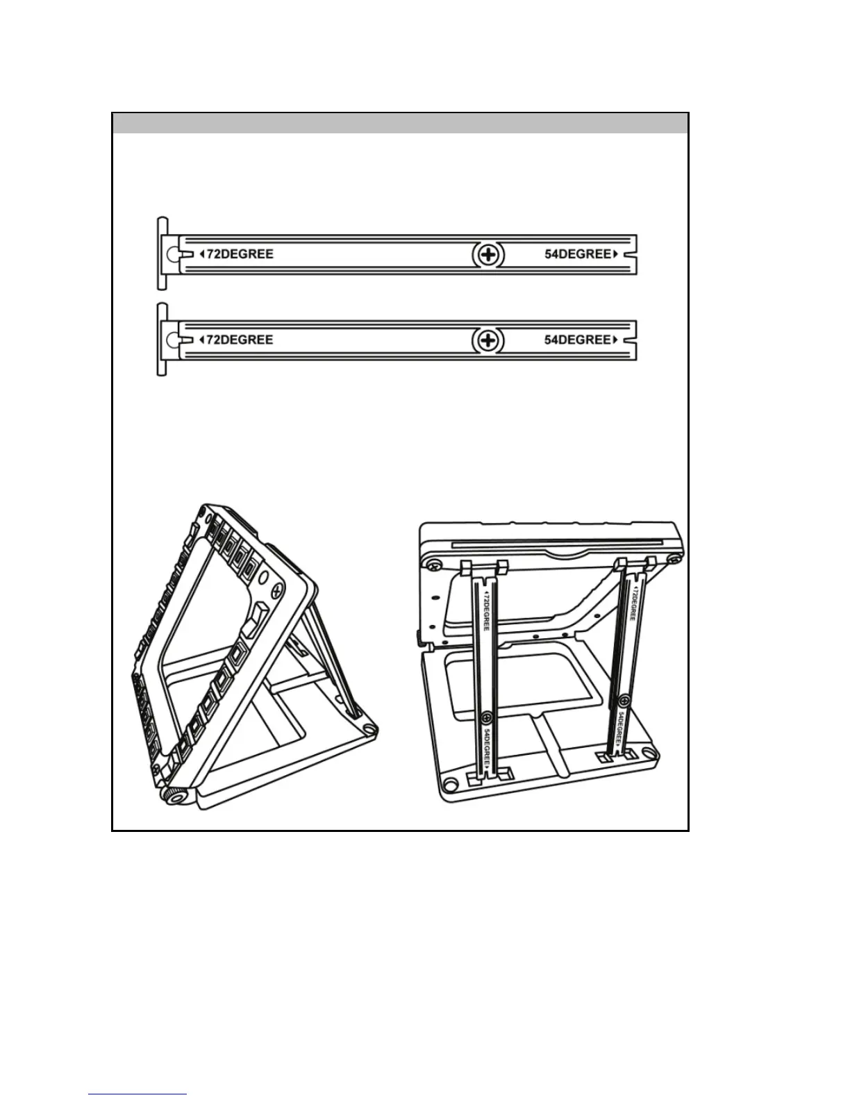 - Orientez les 2 barres de fixation avec l’indication « 54DEGREE » positionnée en bas