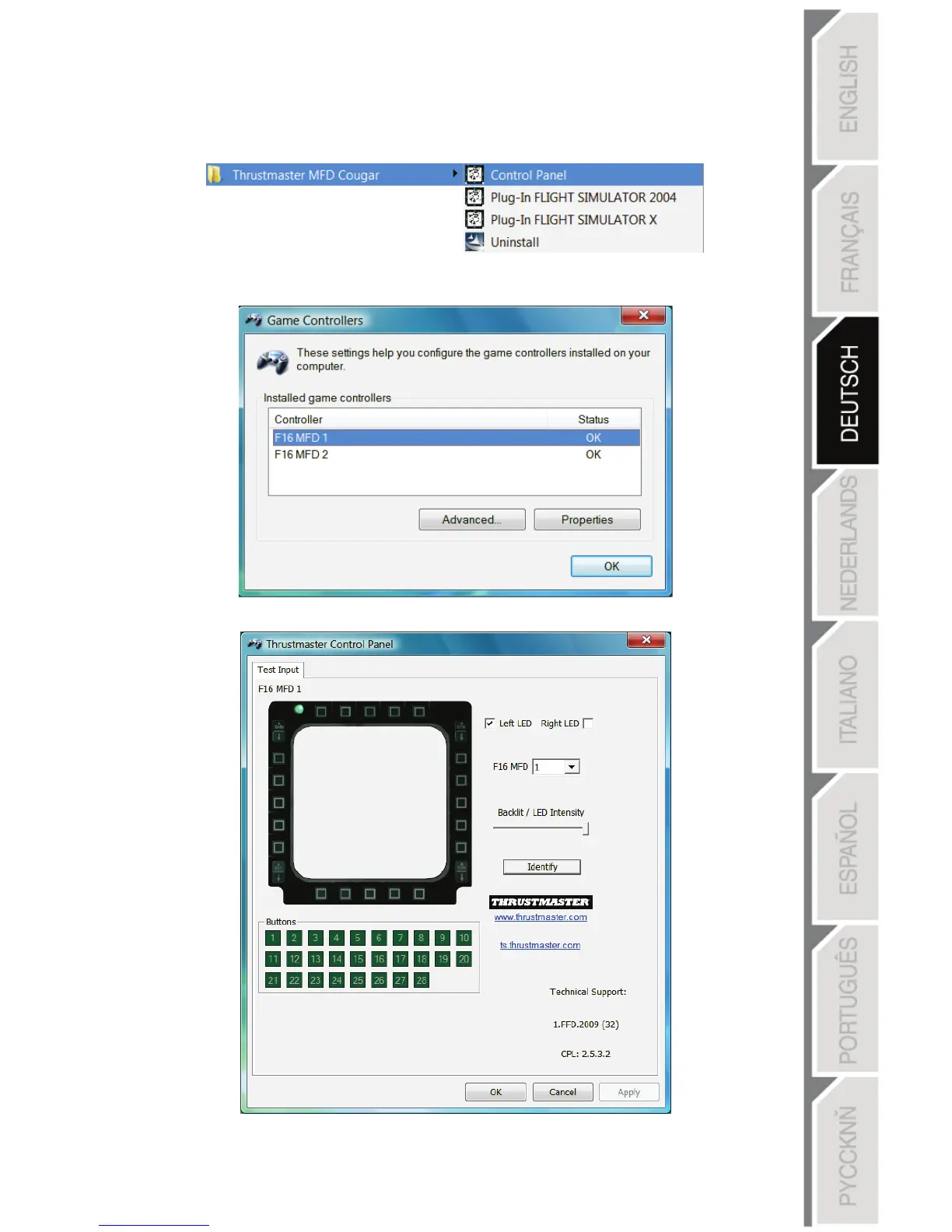 - Wählen Sie Start/Programme/Thrustmaster MFD COUGAR/Control Panel.