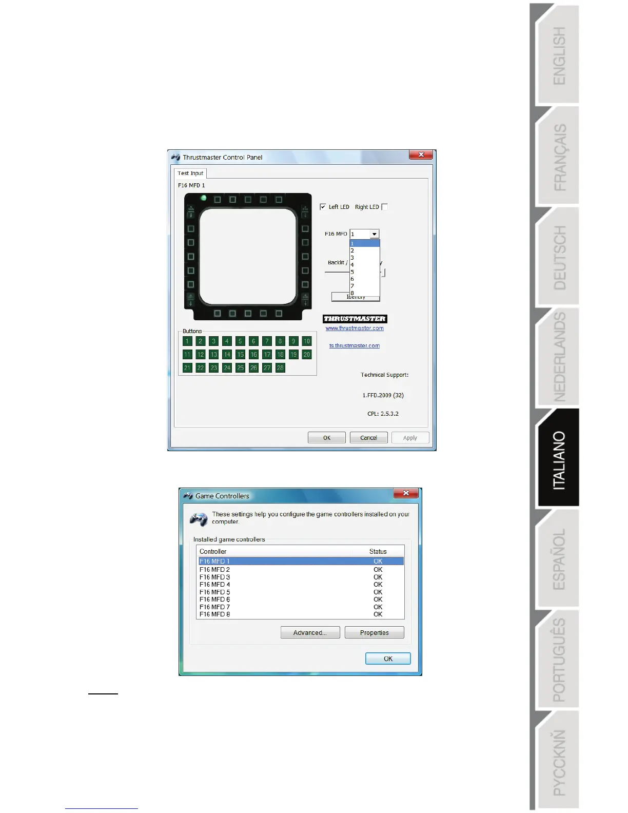 Il Thrustmaster Control Panel può gestire fino a un massimo di 8 MFD COUGAR collegati