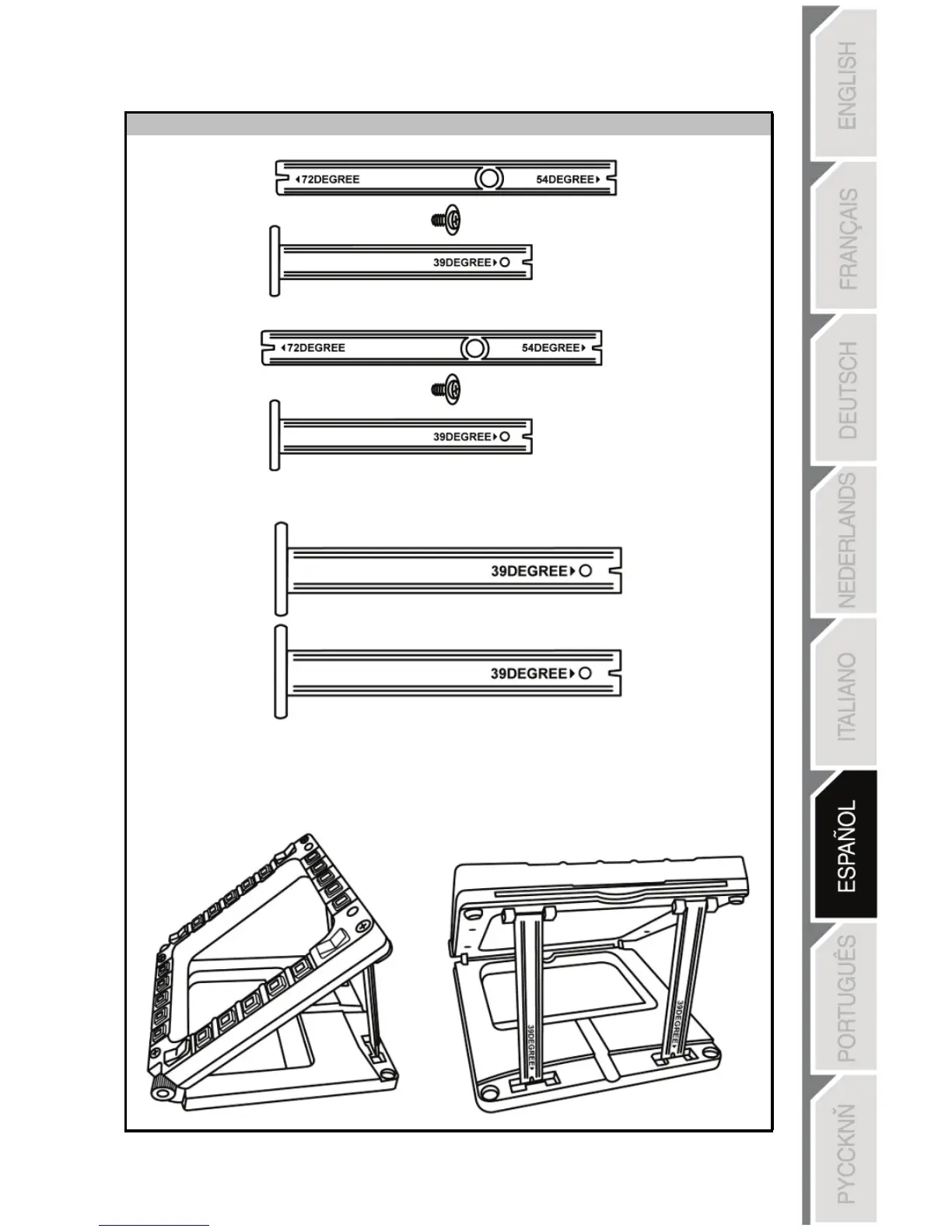 - Coloca las varillas de fijación cortas, con la indicación 39DEGREE mirando hacia