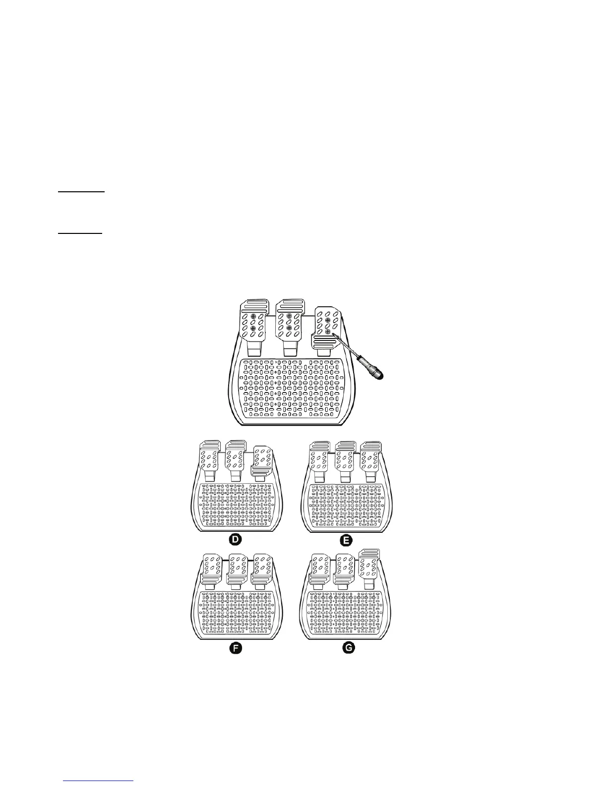 1. A l’aide d’un petit tournevis, dévissez les 2 vis (une courte et une longue) de la pédale que vous désirez