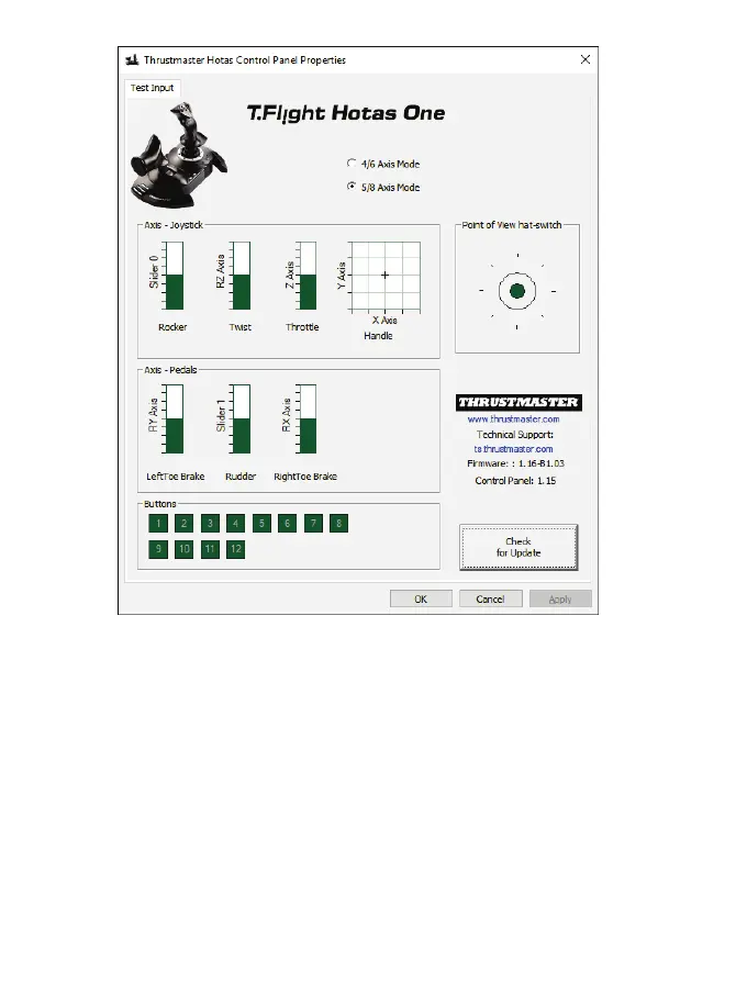 - PC'de, 5/8 eksen modunda, gaz kolunun mafsallı düğmesi ve TFRP dümen pedalları