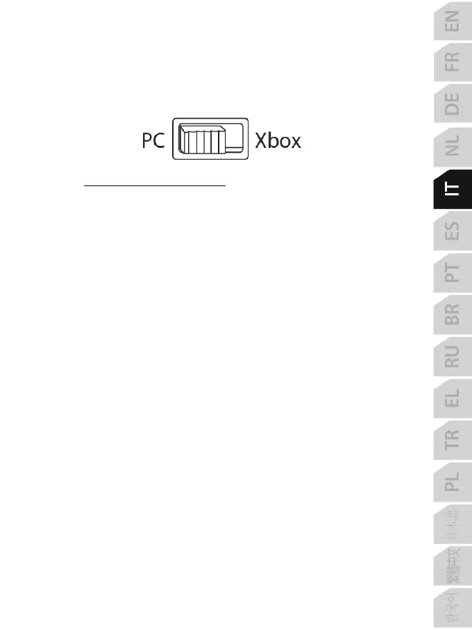 1. Prima di collegare il cavo USB, sposta il selettore (12) in posizione PC.