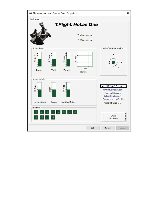 - No PC, no modo de 5/8 eixos, o botão oscilante da manete de potência e o eixo do leme