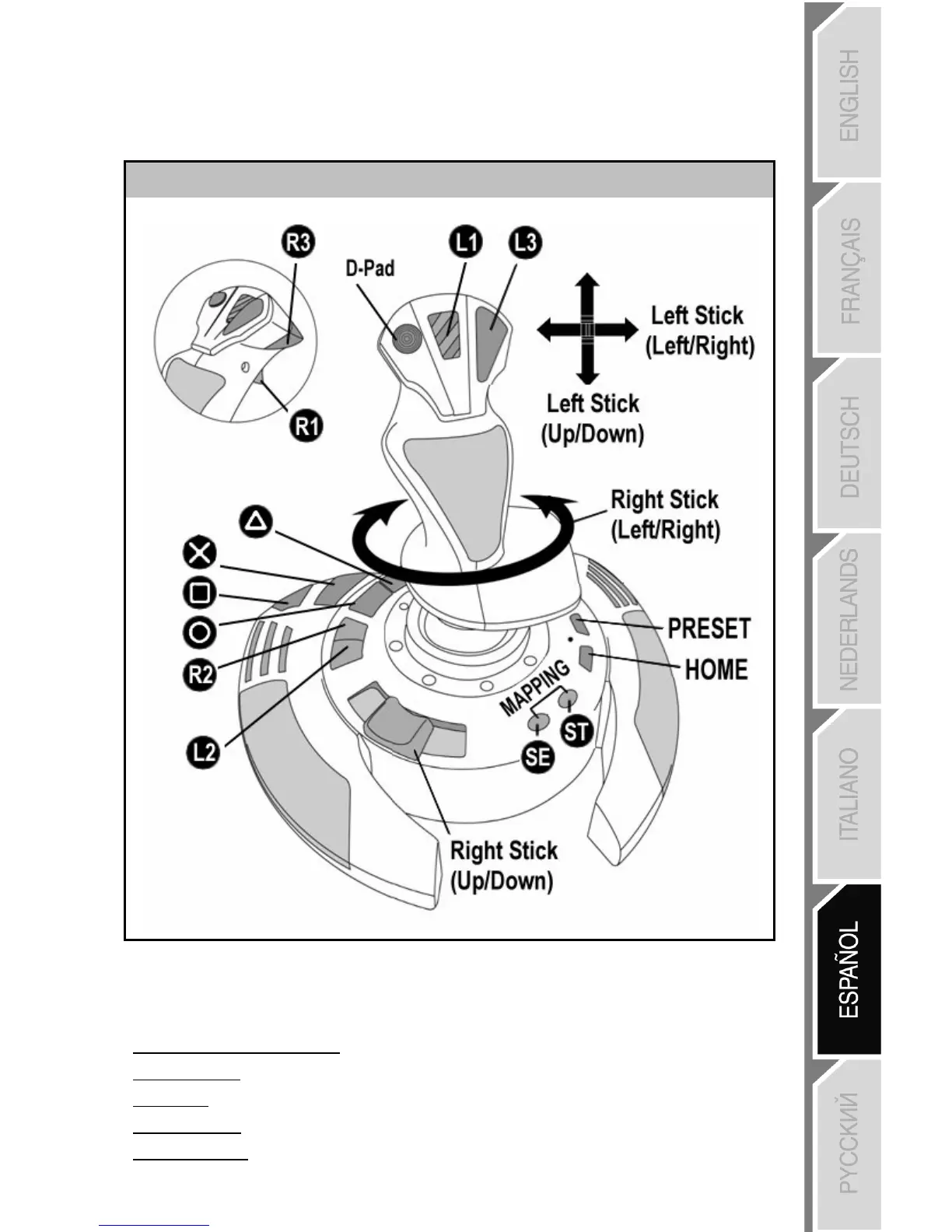 Las 4 direcciones de la palanca: Corresponden con 4 direcciones del mini-stick izquierdo del gamepad.