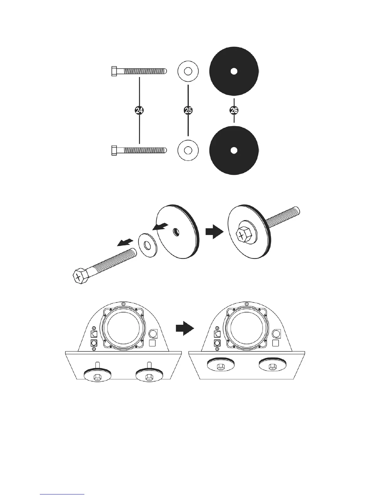 1. Positionnez la rondelle (25) sur la partie métallique du tampon (26), puis insérez la vis