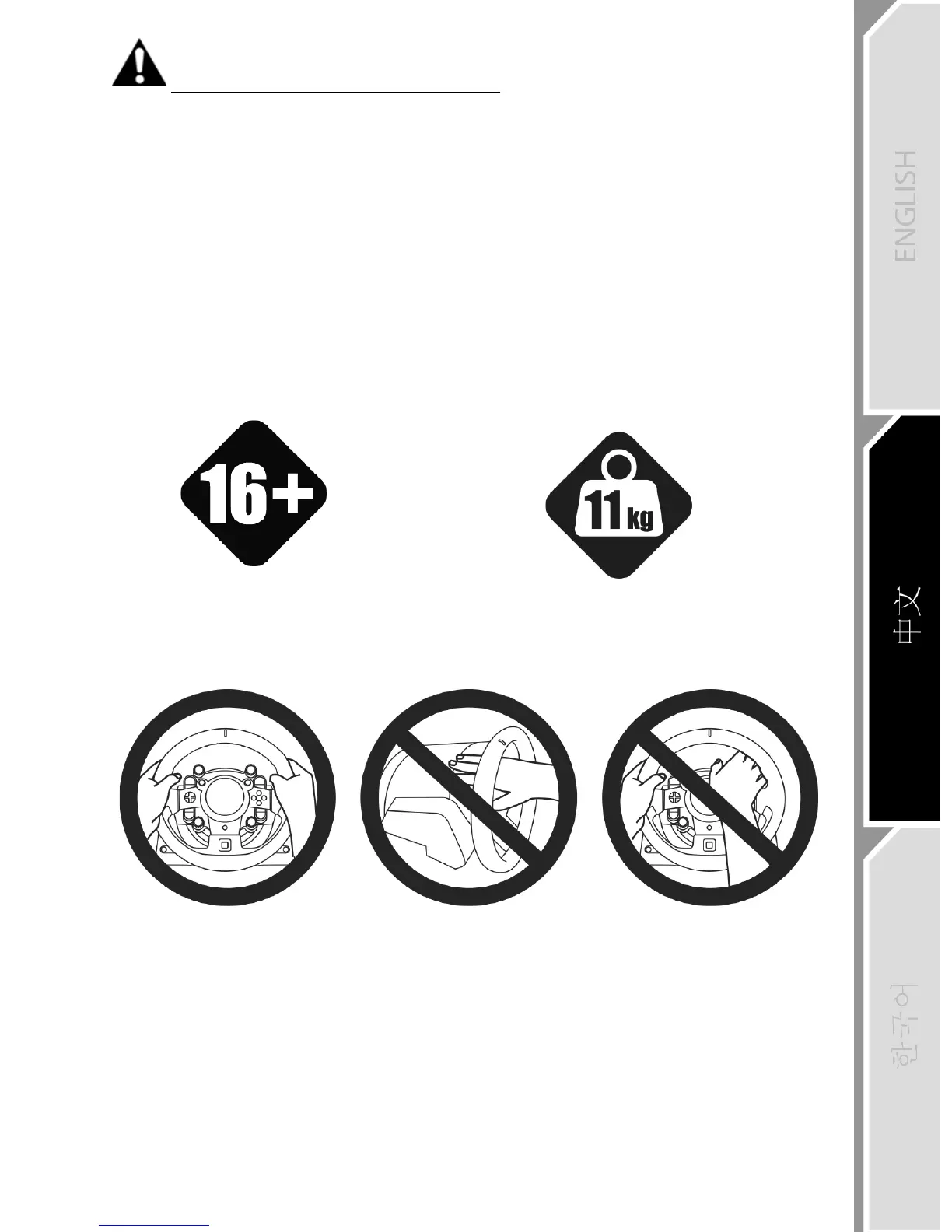使用力回饋賽車方向盤可能會導致肌肉或關節疼痛。為免造成損傷: