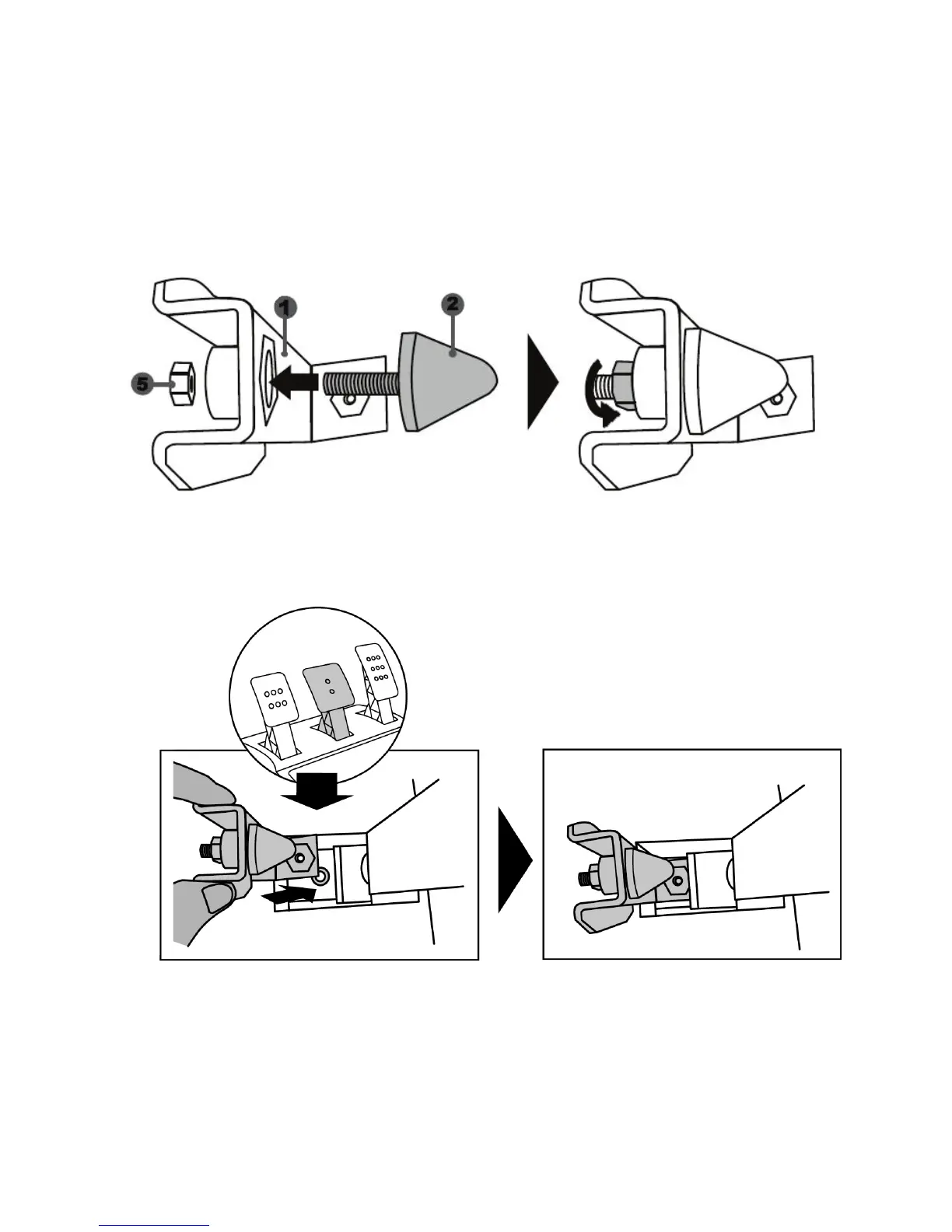 - Screw the conical stop (2) onto its metal support (1).