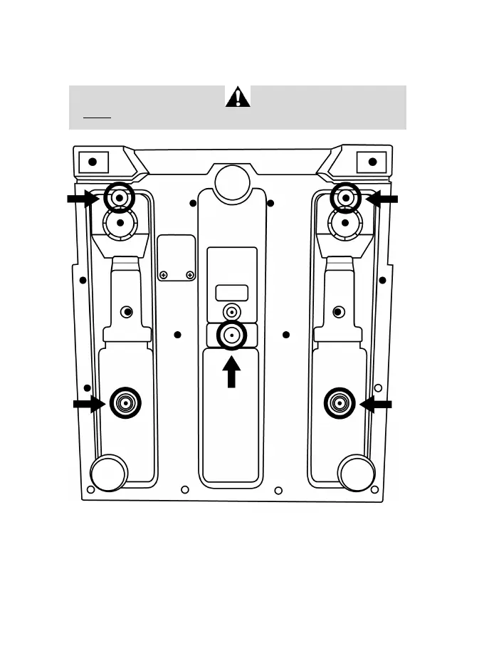 (ingår ej) genom stödhyllan och in i skruvgängorna på undersidan av pedalsetets bas.
