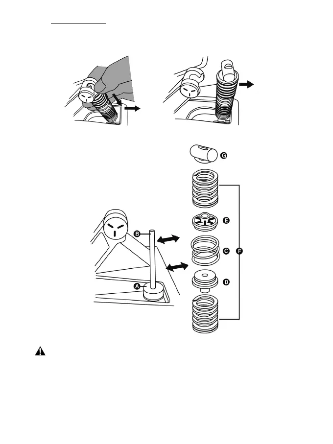 - PC 或游戏主机上断开踏板组,然后用力压紧上固定压头垫圈 (G)(位于踏板背