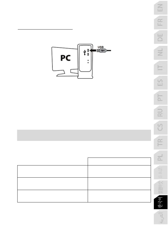 - 페달 세트를 탈착식 USB 케이블 (1)을 사용하여 PC 의 USB 포트에 연결한 다음 드라이버