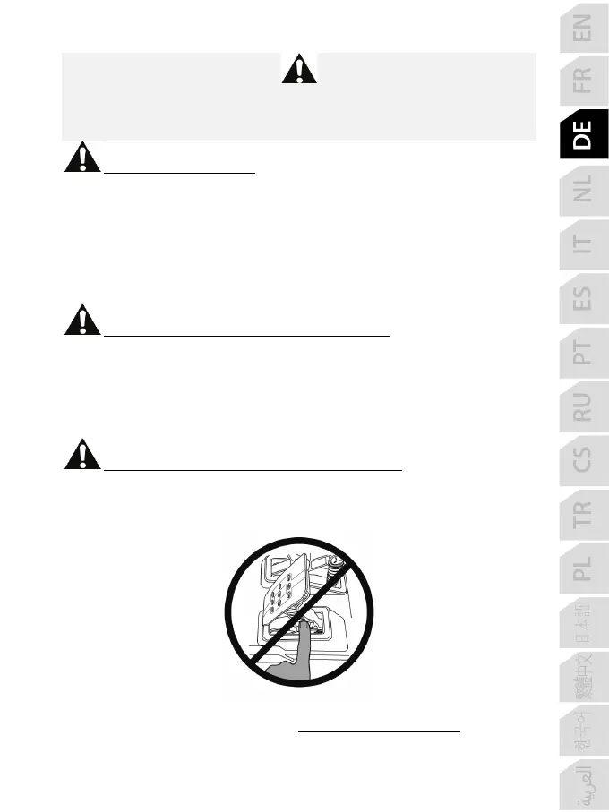 * Halten Sie niemals während des Spiels Ihre Finger (oder andere Körperteile) an die Pedalhebel.