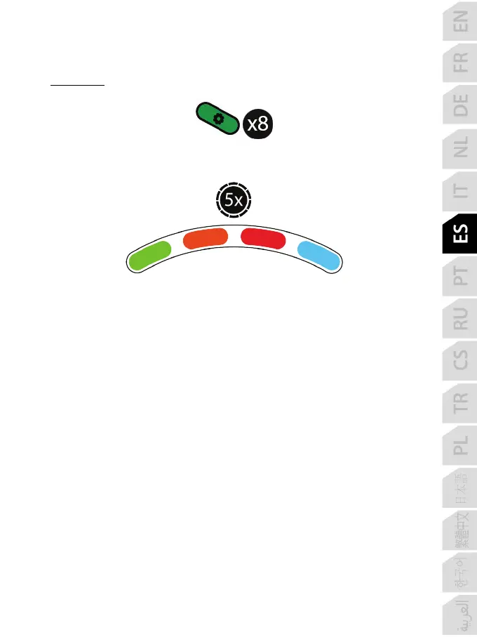 Los 4 LED de RPM (7) parpadean 5 veces simultáneamente para indicar la reconfiguración en el modo