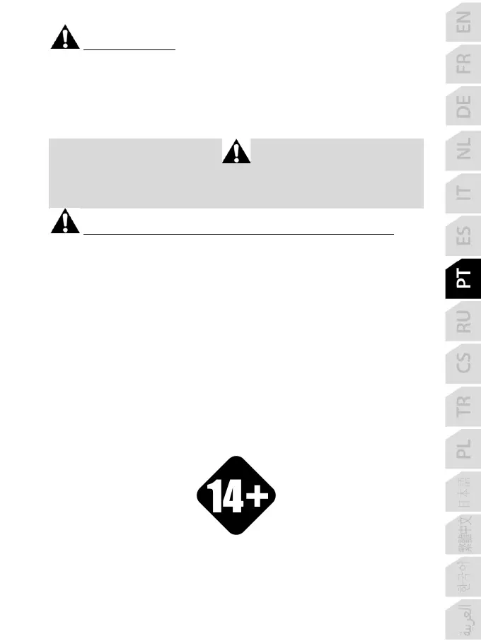 Produto para ser manuseado unicamente por utilizadores com 14 anos de idade ou mais velhos