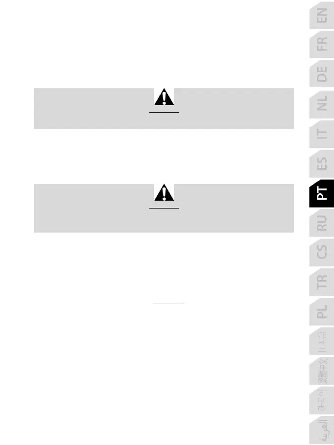 (Isto pode causar uma calibragem incorreta e/ou ferimentos.)