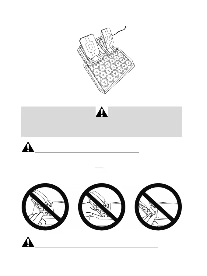* Durante o jogo, nunca coloque os dedos nos lados dos pedais ou perto dos mesmos.