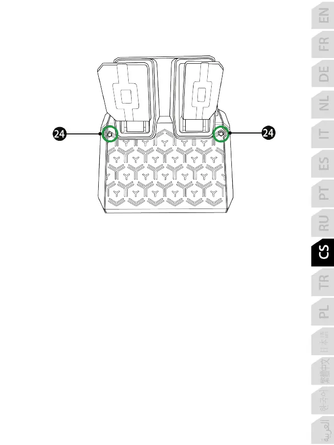 Sadu pedálů lze připevnit k různým podpěrám (prodávají se samostatně) pomocí dvou perforací (24)