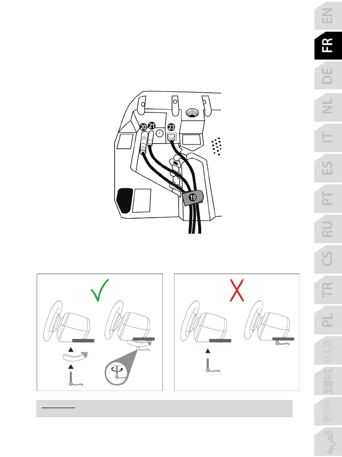 Veillez à suivre les chemins de câbles et à attacher les câbles à l’aide du serre-câble (19) prévu à cet effet.