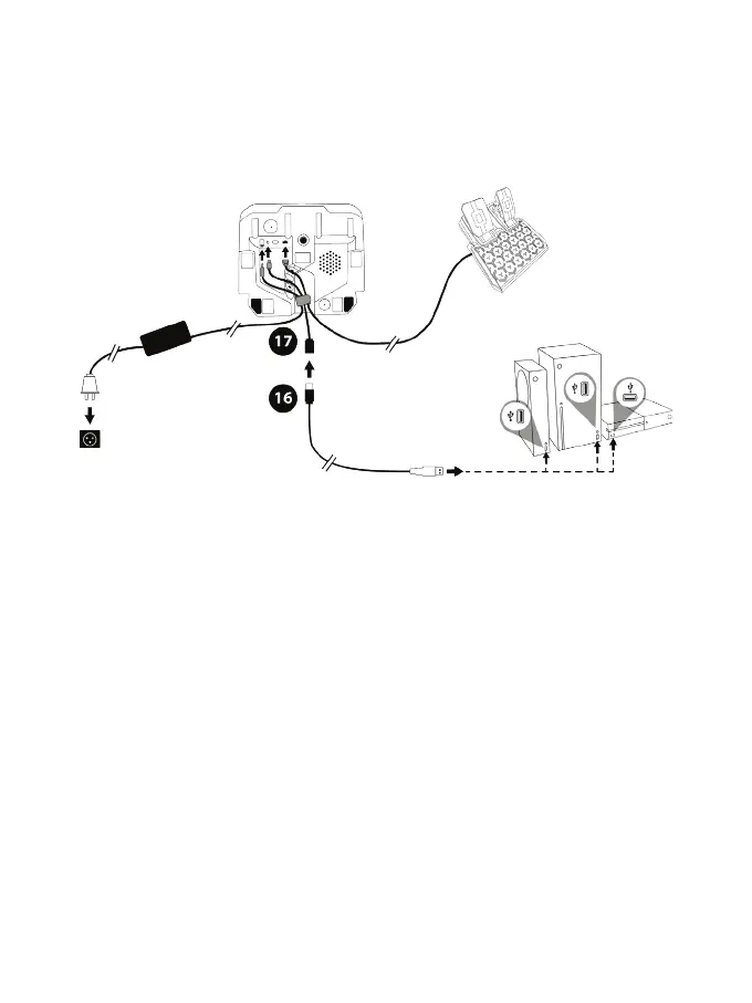 4. USB-C/USB-A 电缆 (16) 连接到 USB-C 电缆 (17) Xbox 主机上的 USB-A 端口。