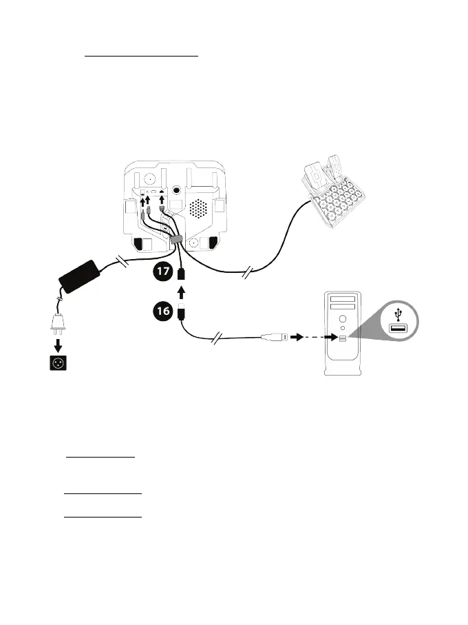 5. 将 USB-C/USB-A 电缆 (16) 连接到 USB-C 电缆 (17) 及 PC 上的 USB-A 端口。