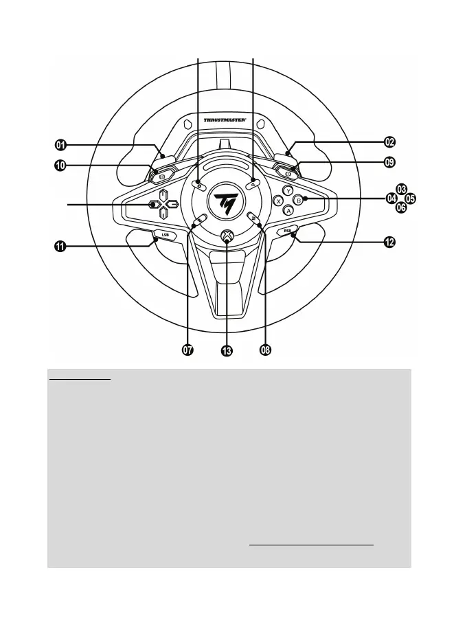 - 4 LED RPM diódy (7) otáčok motora sú funkčné v počítačových hrách kompatibilných s Thrustmaster