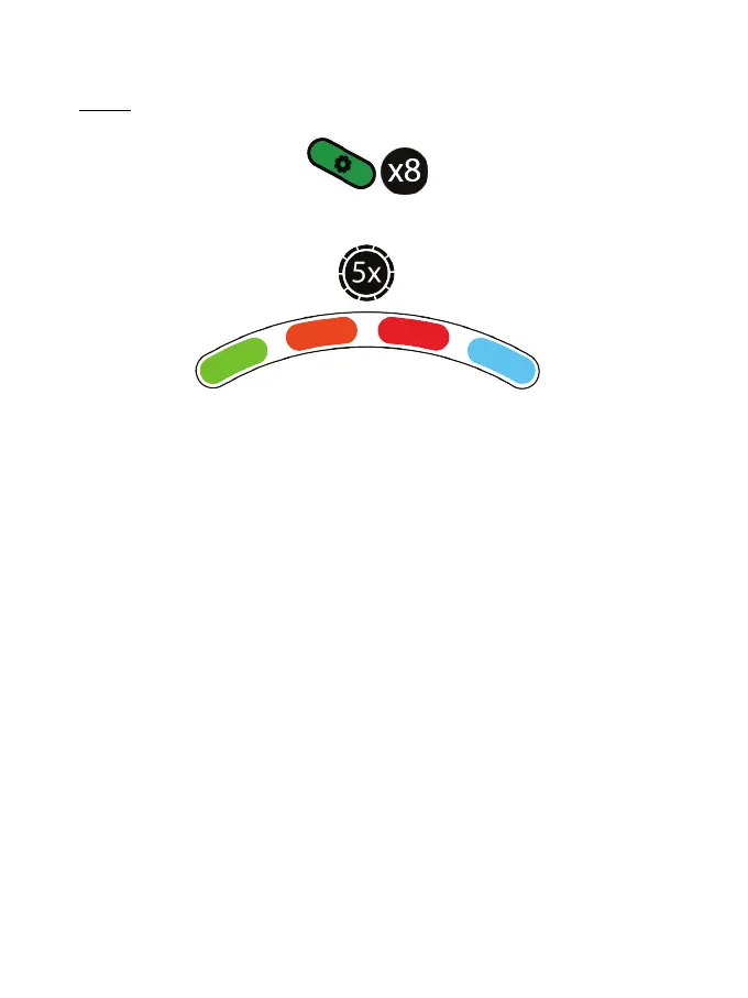 A 4 RPM LED (7) egyszerre felvillan 5-ször, így jelezvén az alapértelmezett mód visszaállítását.