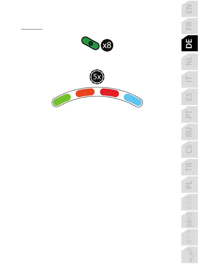Die 4 RPM-LEDs (7) blinken fünfmal gleichzeitig, um die Neukonfiguration im Standardmodus
