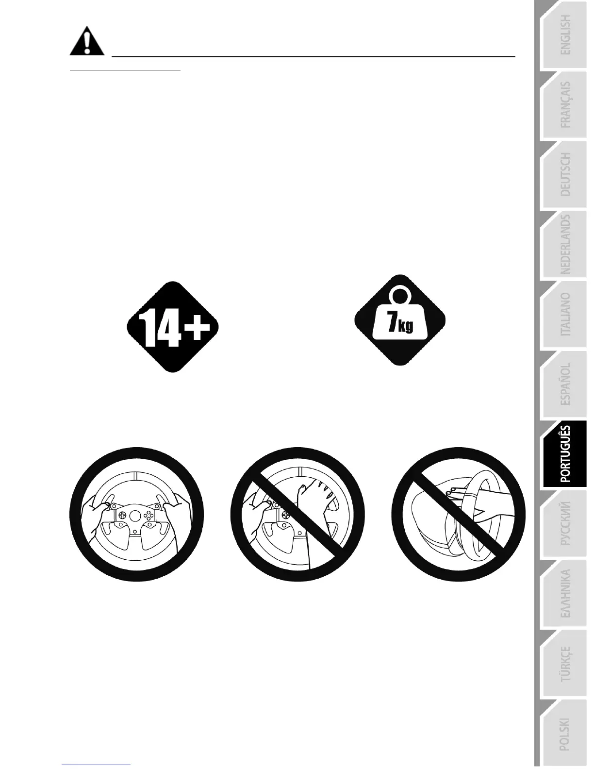* Durante o jogo, mantenha sempre ambas as mãos posicionadas corretamente no volante sem largá-