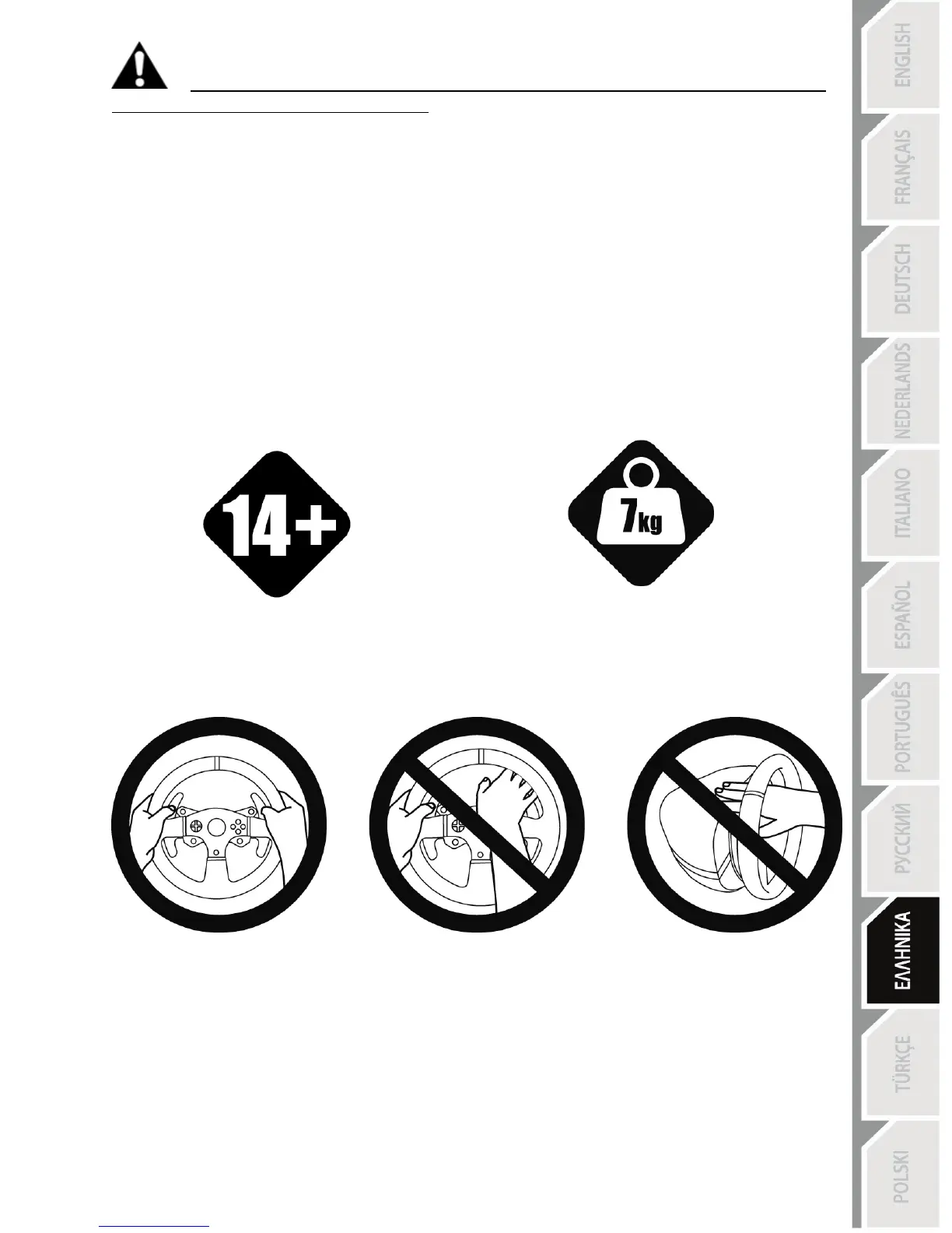 * Κατά τη διάρκεια του παιχνιδιού, έχετε πάντα και τα δύο χέρια σωστά τοποθετημένα στο τιμόνι