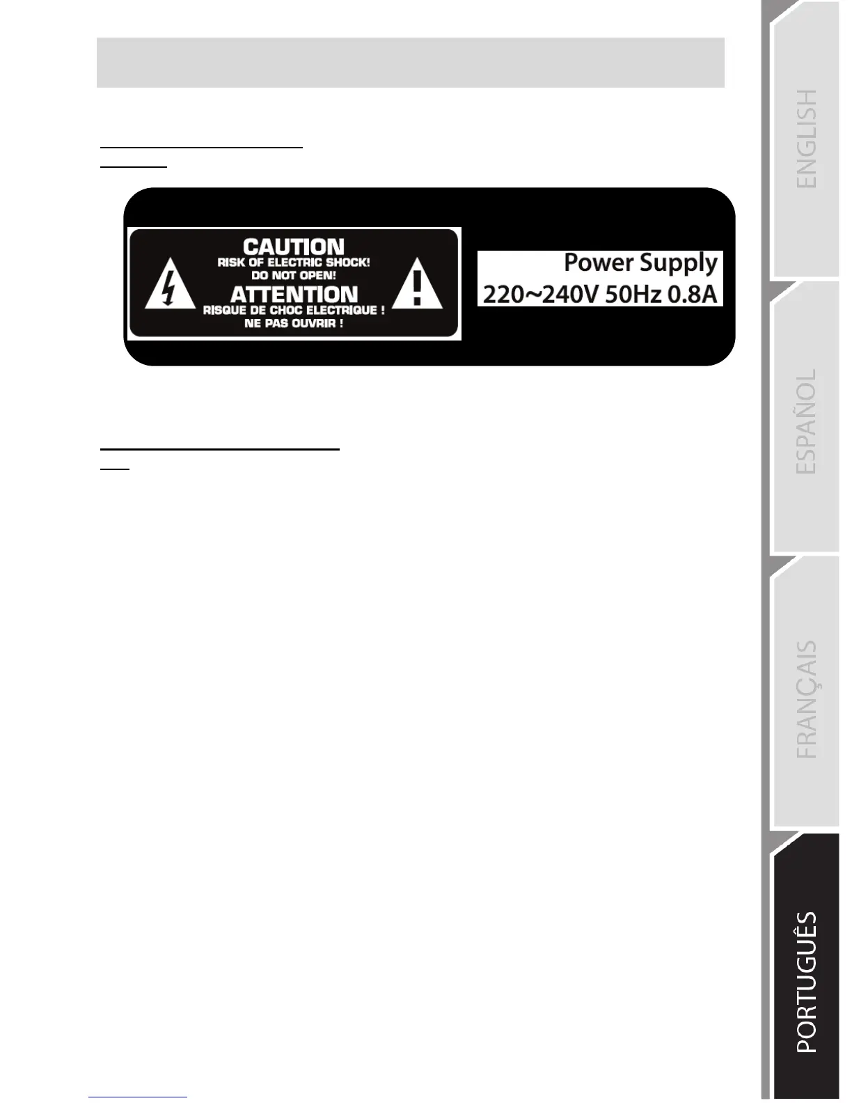 A versão europeia deve ser alimentada exclusivamente com corrente de 220 V!