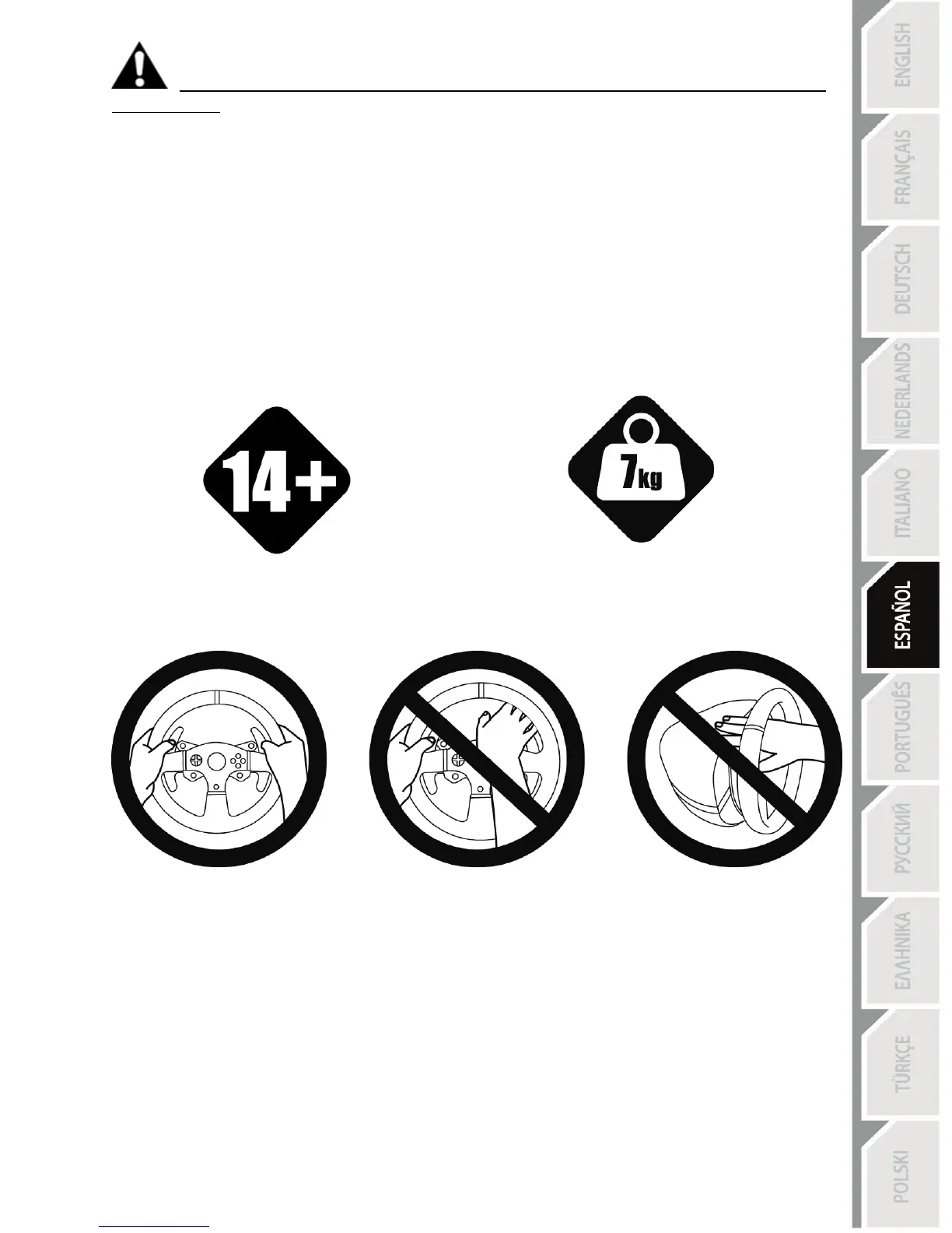 * Asegúrate de que la base del volante de carreras esté fijada correctamente, según las instrucciones