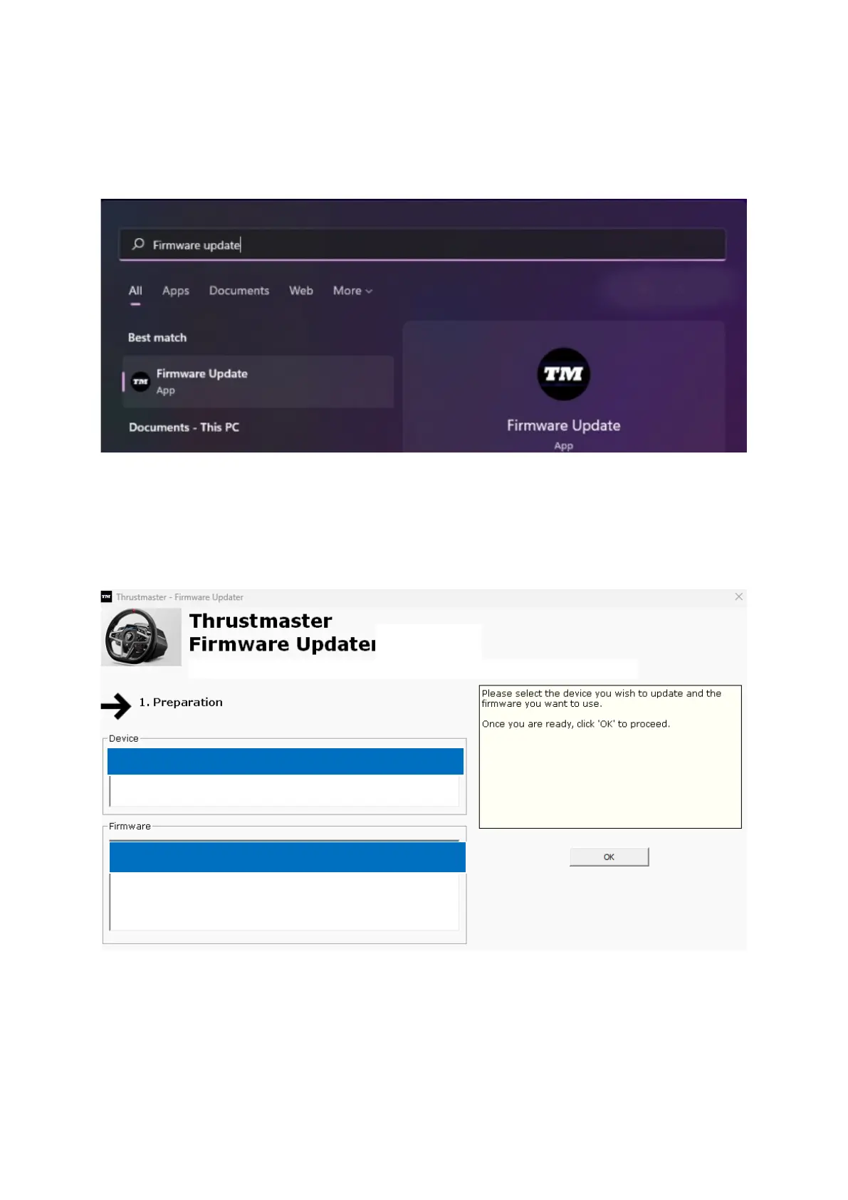 4) Apparirà sullo schermo la finestra Thrustmaster – Firmware Updater