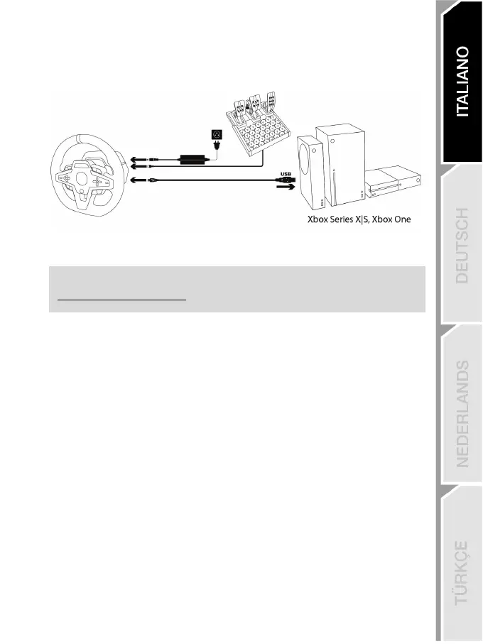 - L’elenco dei giochi compatibili con la console Xbox e il volante T248, è disponibile qui: