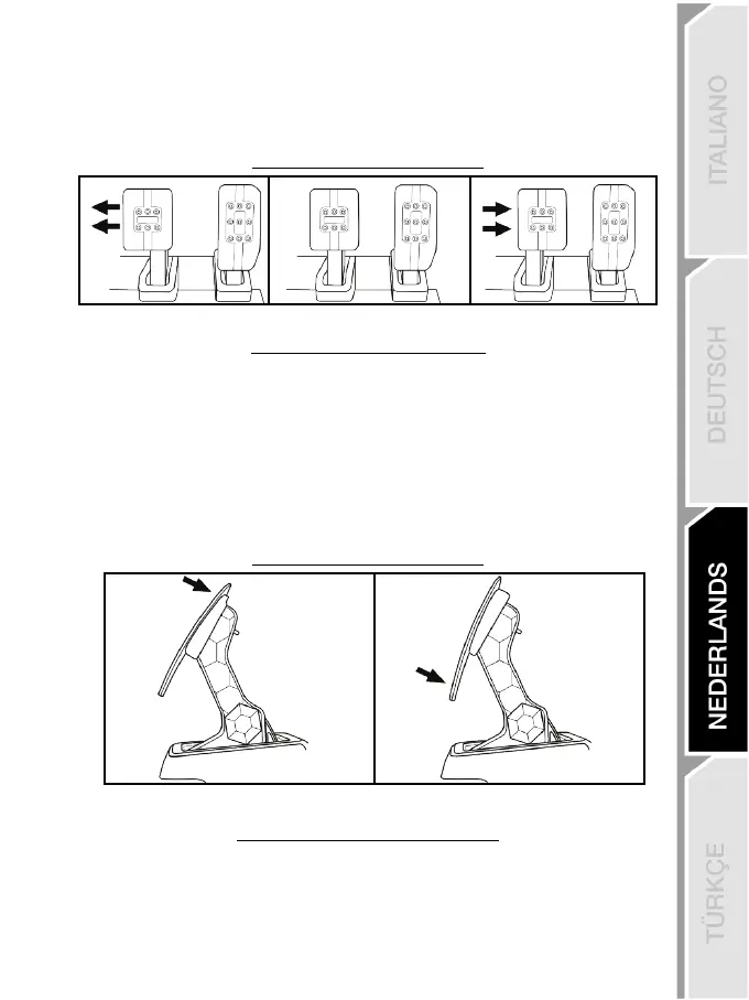 De RUIMTE TUSSEN de drie pedalen afstellen
