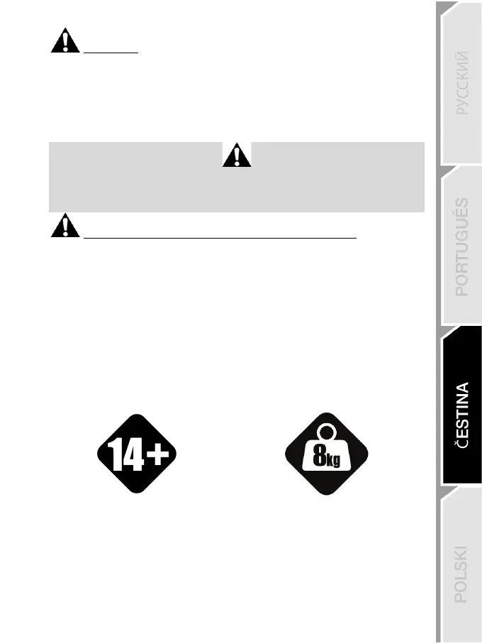 Z bezpečnostních důvodů nikdy nepoužívejte sadu pedálů naboso
