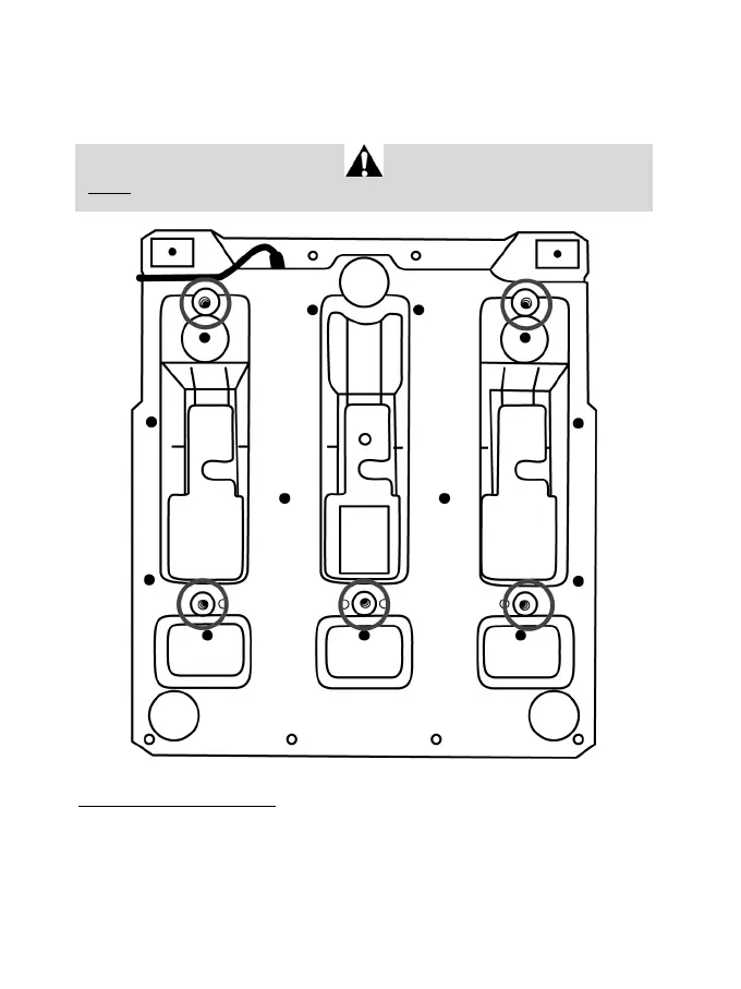 genom stödhyllan och in i de gängade hålen på undersidan av pedalsetets bas.